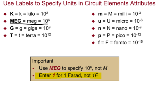 1F은 그냥 1만 입력, 1mega도 1MEG로 입력해야 함
