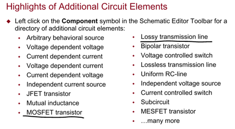 >R, C, L, Diode, BJT, MOSFET, JFET, 독립전압원, 전류원